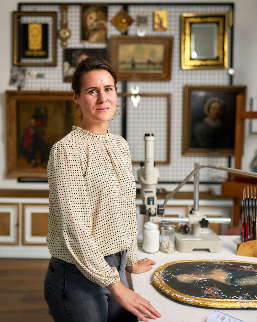 Mein Beruf als Restauratorin fasziniert mich täglich aufs Neue. Jedes Bild erzählt mir eine Geschichte, deren Spuren ich aufdecke. Dazu setze ich alles ein, was zu meiner professionellen Expertise gehört: (kunst-) historische und kunsttechnologische Forschung, Chemie, Fotografie, Mikroskopie und meine sensible Fingerfertigkeit. Kurz, die Balance zwischen Wissenschaft und Werkstatt bestimmt meine restauratorische Arbeit.